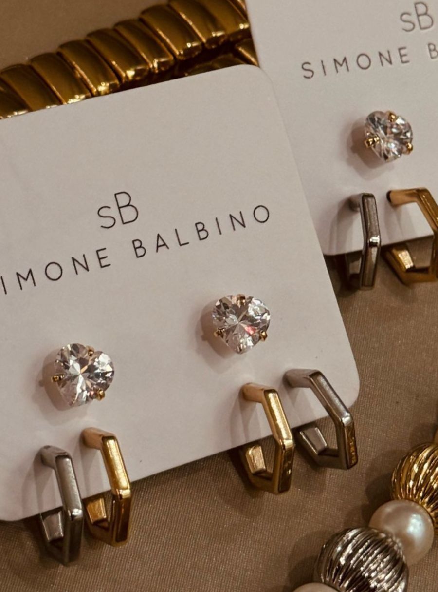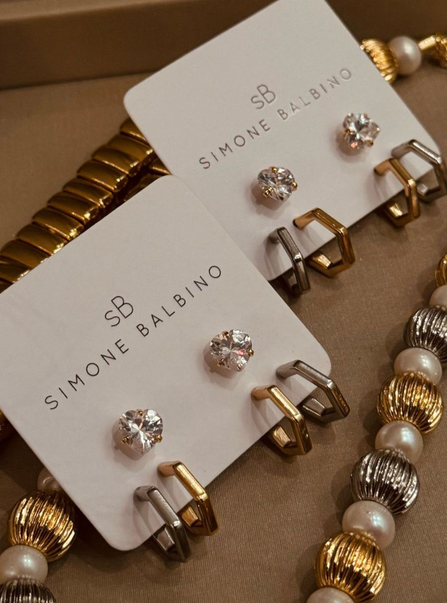 Trio Brincos Argolinhas Geométricas e Ponto de Luz Coração Mix Banhos