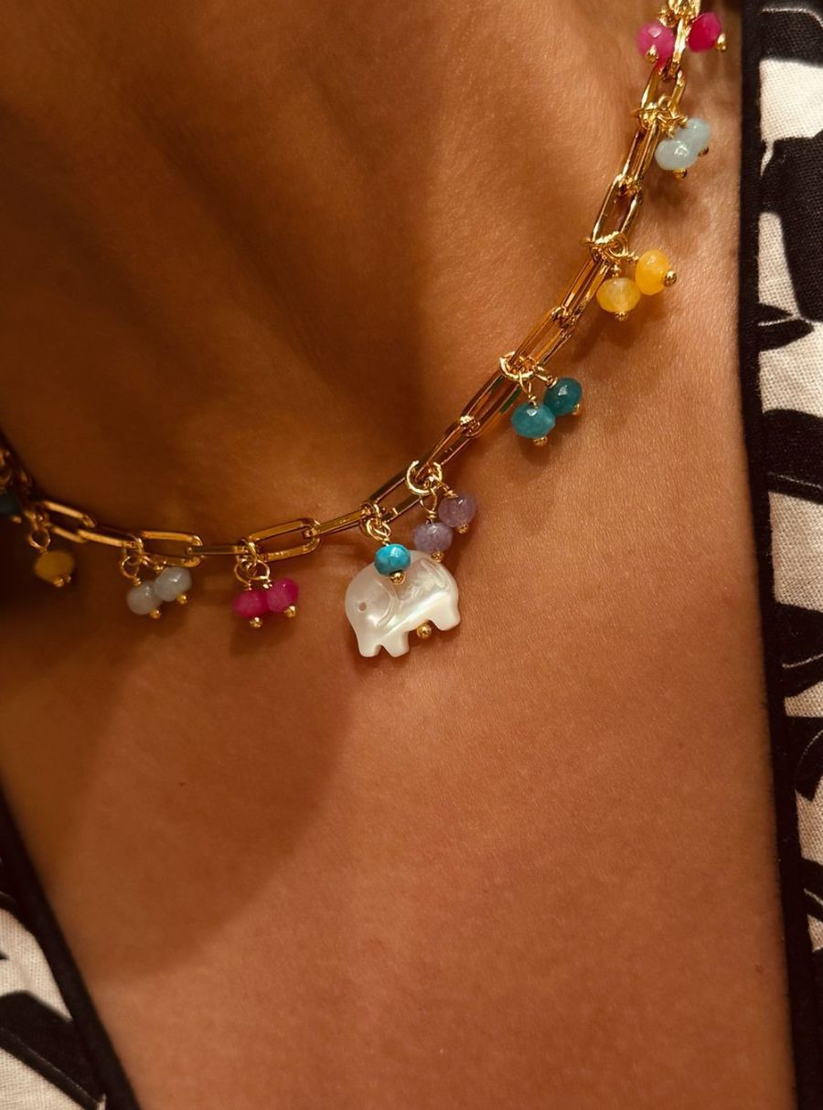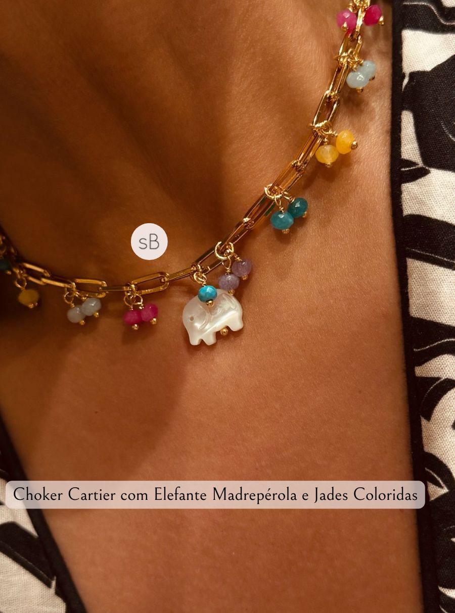 Choker Cartier com Elefante Madrepérola e Jades Coloridas