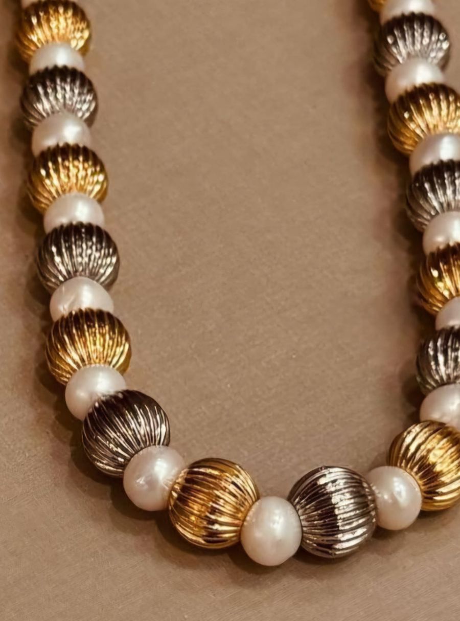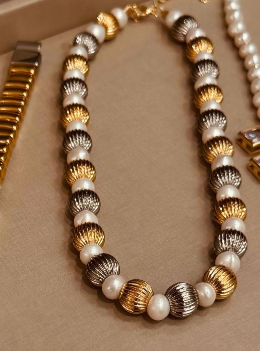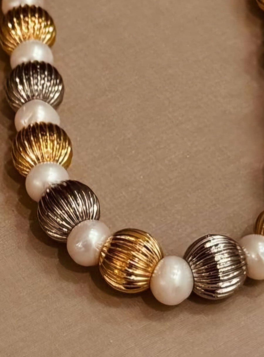Gargantilha Pérolas Barrocas com Esferas Riscadas Mix Banhos