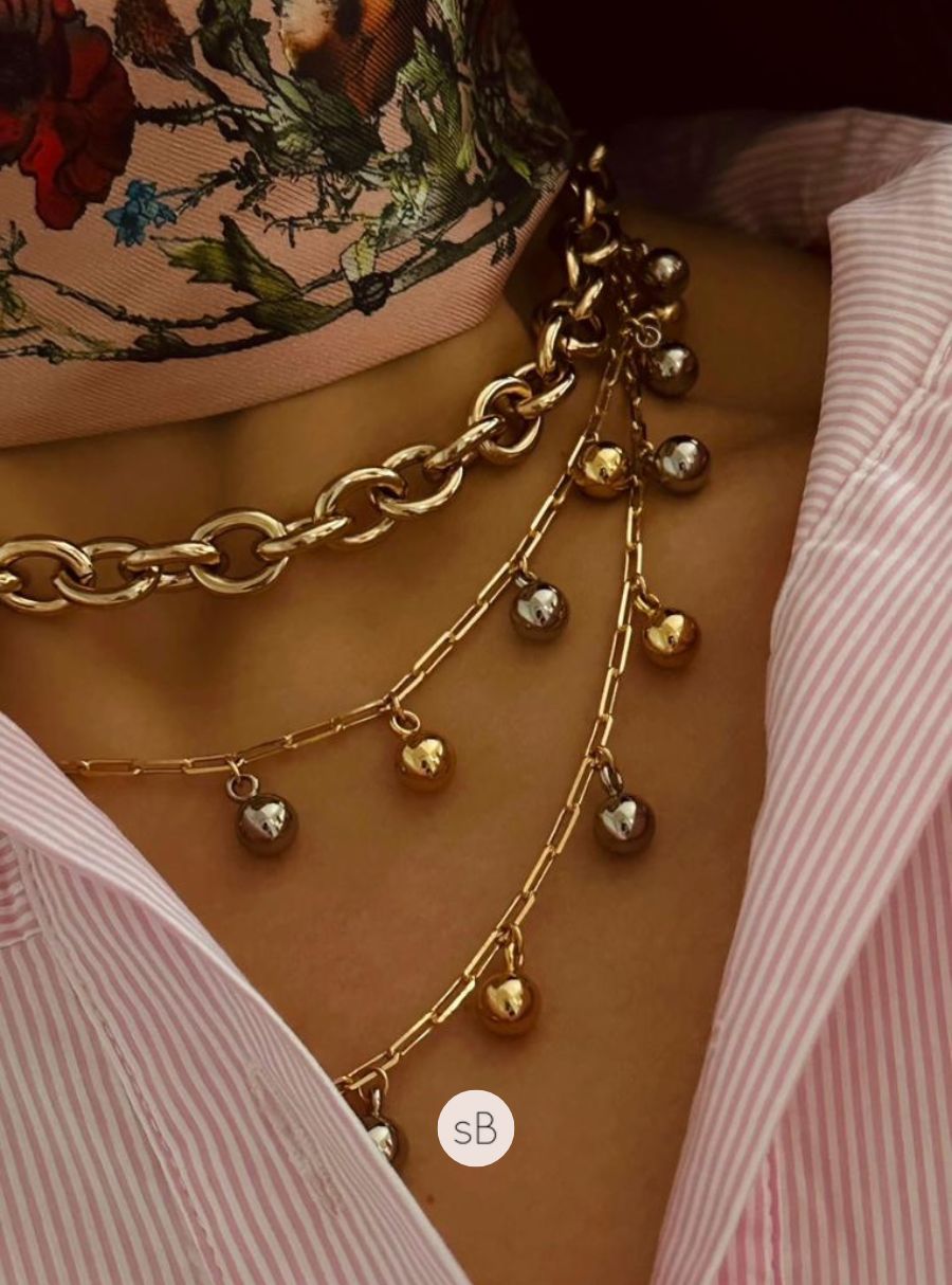 Peça 2. Colar Duplo com Corrente Cartier e Esferas Mix de Banhos R$242