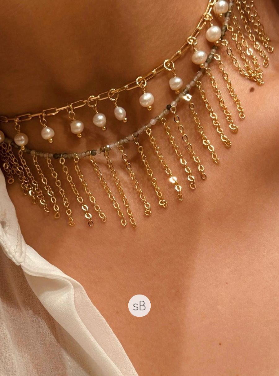 GARGANTILHA PEDRARIA NATURAL VERDE COM FRANJA CORRENTE FININHA R$187