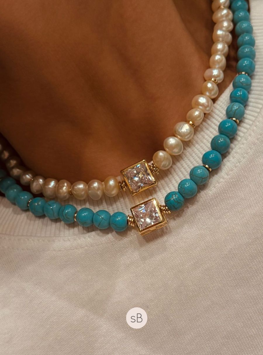 GARGANTILHA TURQUESA COM PEDRARIA CARRÉ R$ 289
